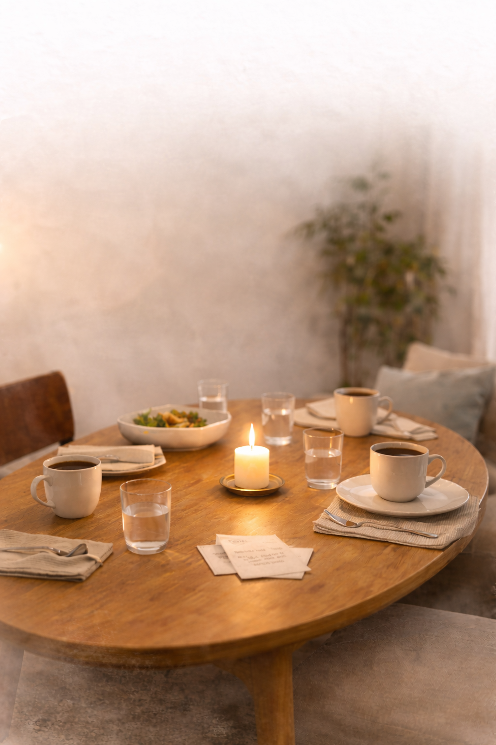 Keeping an object at the center gives the table a shared point of focus. It holds the intention quietly throughout the meal and offers something steady when conversation becomes personal. It also reminds you that many others are sitting at their own tables, doing the same.
