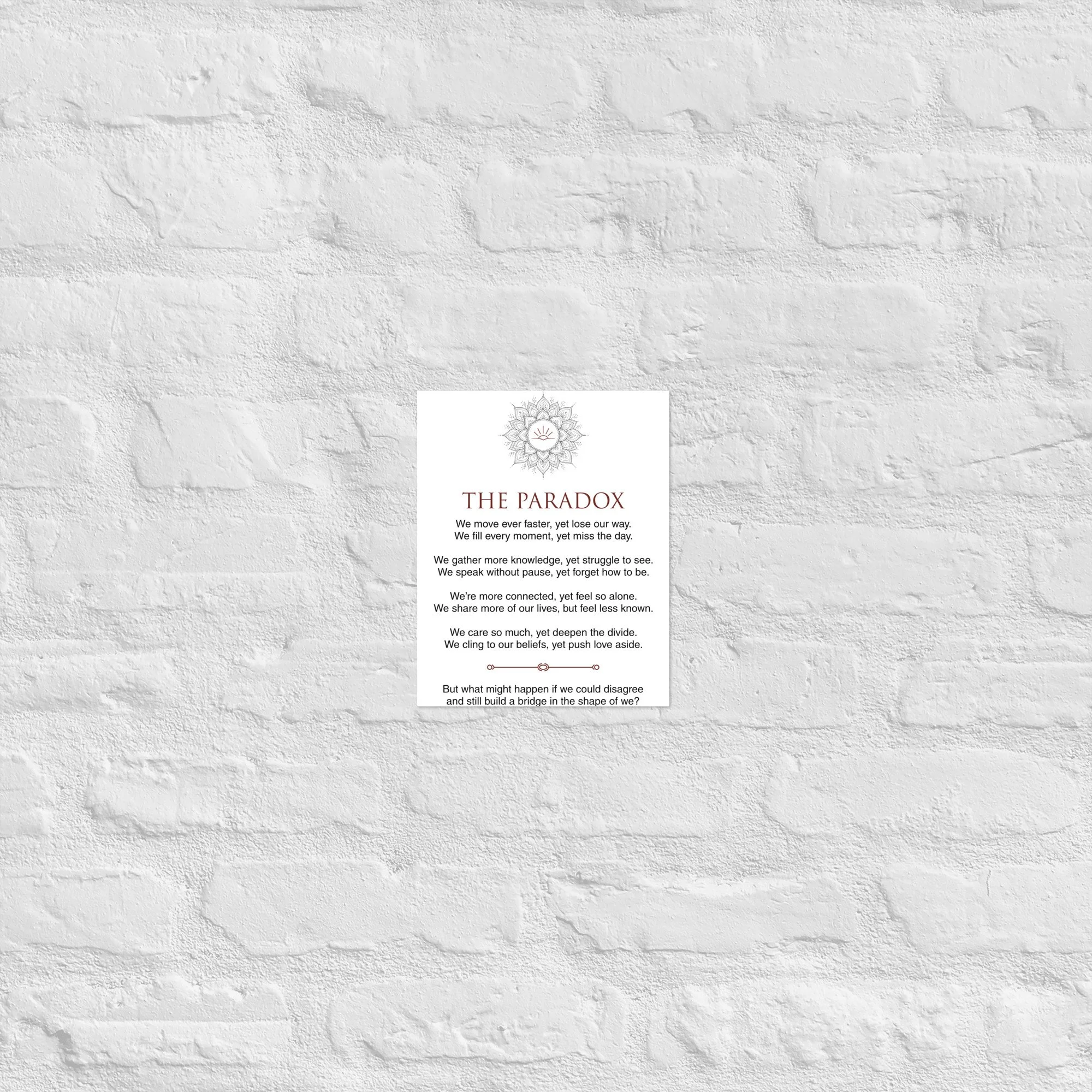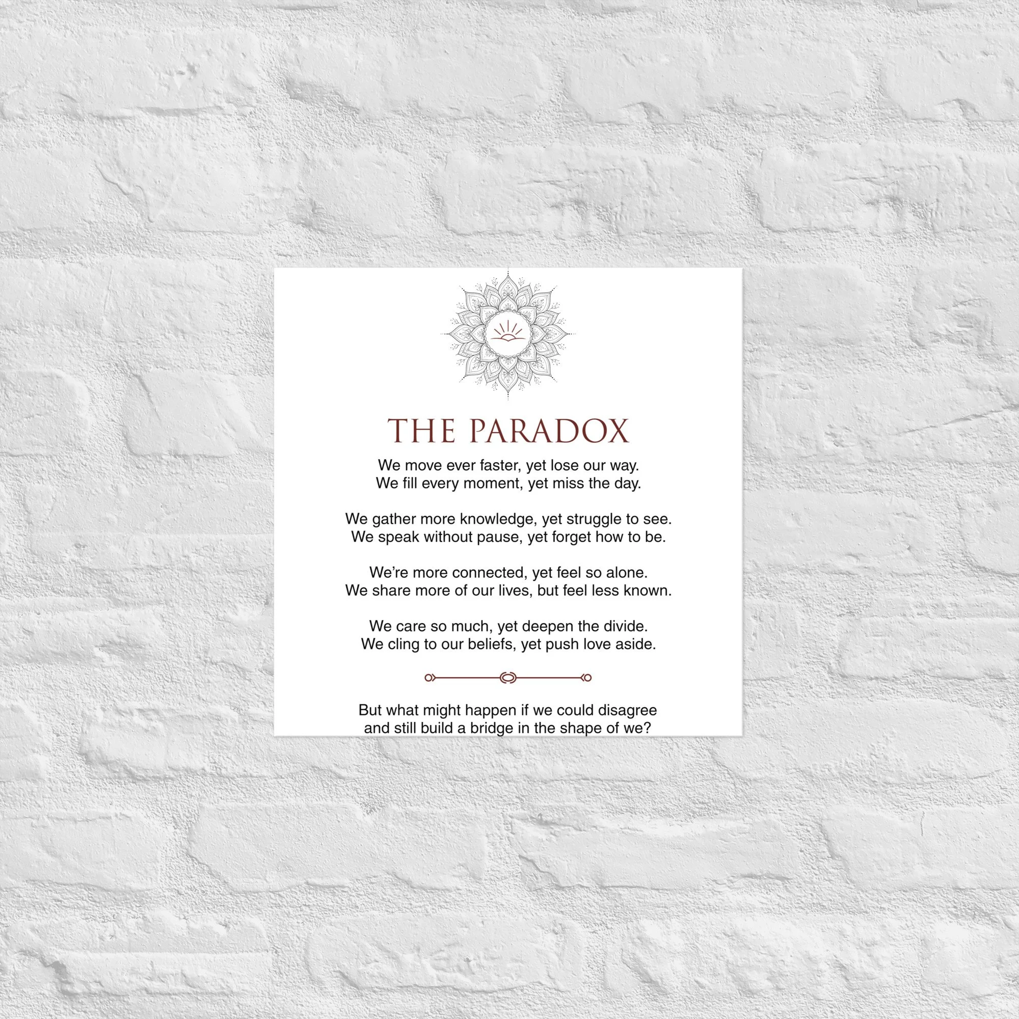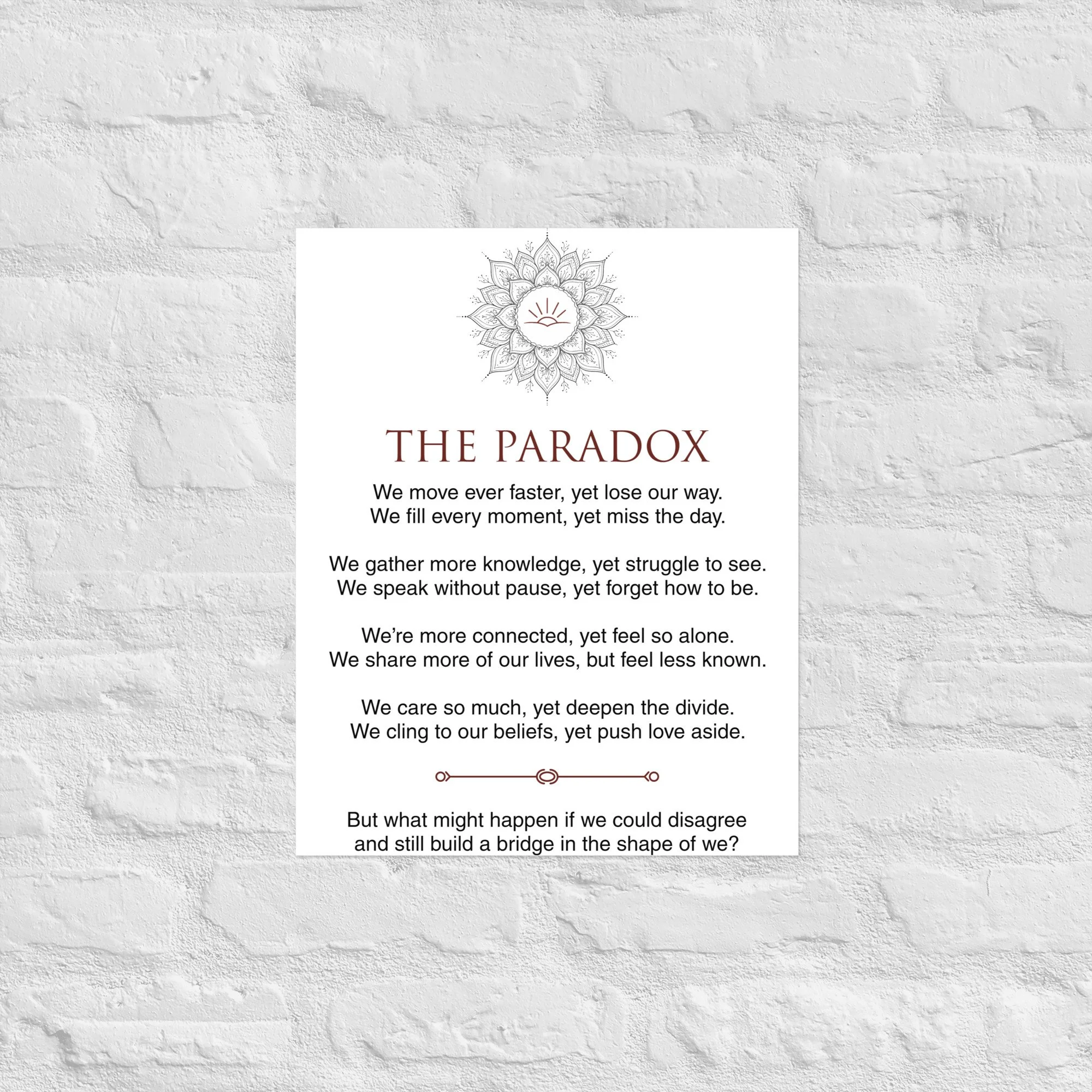 Store Store Clear Filters Filter Clear Filter Unisex Sweatshirt from $45.50 Select Size 2XS XS S M L XL 2XL 3XL 4XL 5XL 6XL Add To Cart Added! Mug with Color Inside from $10.50 Select Size 11 oz 15 oz Add To Cart Added! Dad hat $18.00 Add To Cart Added! Unisex Garment Dyed Creator 2.0 Vintage T-Shirt | Stanley/Stella SATU041 from $30.50 View Options Cuffed Beanie $21.50 Add To Cart Added! Softcover journal with inside prints from $9.50 Select Size 100 pages (50 sheets) 200 pages (100 sheets) Add To Cart Added! Cotton Heritage MC1082 I Men's Premium Short Sleeve Tee from $27.00 Select Size S M L XL 2XL 3XL Add To Cart Added! Travel mug with a handle from $29.00 Select Size 25 oz 40 oz Add To Cart Added! Unisex premium t-shirt from $29.00 Select Size S M L XL 2XL 3XL Add To Cart Added! Unisex premium t-shirt from $29.00 Select Size S M L XL 2XL 3XL Add To Cart Added! Trucker Cap $17.50 Add To Cart Added! Women’s crop top $32.00 XS S M L XL Add To Cart Added! Poster from $7.50 Select Size A1 (23.3″×33.1″) A2 (16.5″×23.3″) 10″×10″ 11″×14″ 12″×12″ 12″×16″ 12″×18″ 14″×14″ 16″×16″ 16″×20″ 18″×18″ 18″×24″ 20″×30″ 24″×36″ 5″×7″ 8″×10″ Add To Cart Added! practice the pause hat $30.00 S/M L/XL Add To Cart Added! closer than we think shirt from $25.50 Select Size XS S M L XL 2XL Add To Cart Added! Unisex Hoodie from $43.50 View Options No results found No results match your search. Try removing a few filters.