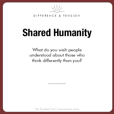 There’s no right way to use them. You might begin with people you feel comfortable with, or you might choose to use them with someone whose experiences or perspectives are different from your own.